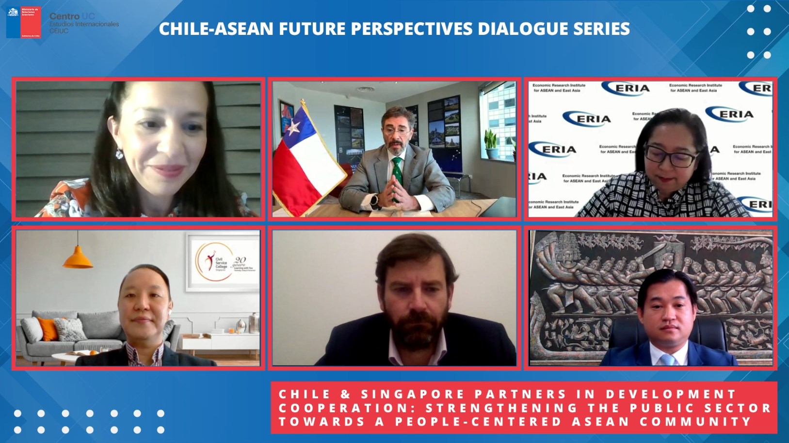 El 23 de septiembre, en el marco del ciclo de diálogos Chile-ASEAN, tuvo lugar el webinar organizado por la Embajada de Chile en Singapur "Chile & Singapore Partners in Development Cooperation: Strengthening the Public Sector towards a People-Centred ASEAN Community".