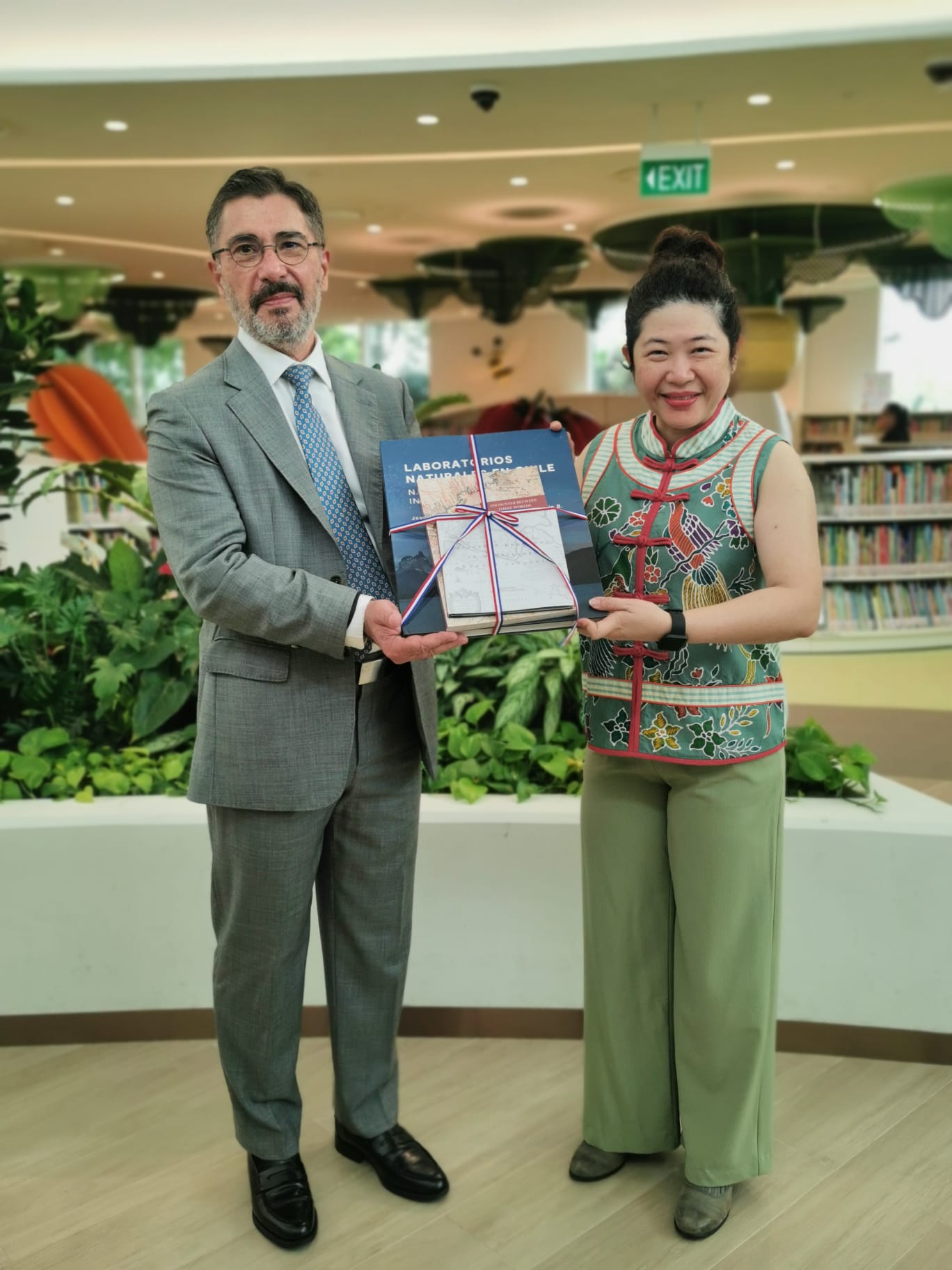 Junto con agradecer las donaciones, la Directora Soh Lin y su equipo organizaron una visita guiada de la nueva sede para los representantes de la Embajada, en donde compartieron la experiencia de la NLB en el uso de aplicaciones digitales para el préstamo de libros, la incorporación de políticas de sustentabilidad en el diseño de la biblioteca, el fomento de la lectura infantil y el desarrollo de actividades de interacción con la comunidad.