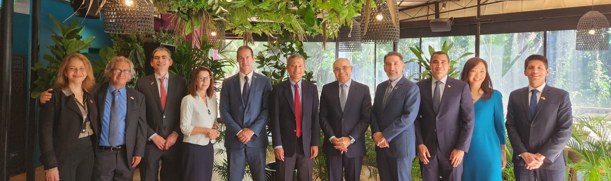 Del encuentro también participaron los Embajadores de Argentina, Brasil, Colombia, Costa Rica, México, Panamá y el Encargado de Negocios de Venezuela. Además, estuvieron presentes la Directora General y la Subdirectora de Américas del Ministerio de Relaciones Exteriores de Singapur.