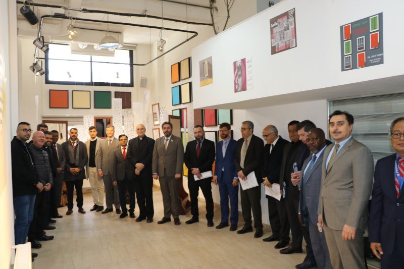 La invitación, cursada por el decano del Cuerpo Diplomático en Siria, nuncio Cardenal Mario Zenari, consistió en una visita guiada por los sacerdotes de la infraestructura, junto con la exposición de las tareas que llevan a cabo en el mentado centro, ubicado en el barrio de Jaramana, cuya población la constituye un 90% de comunidad musulmana.