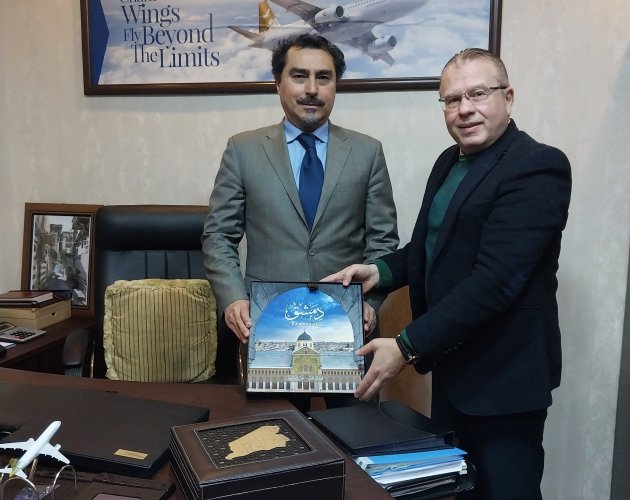 E.N. de Siria se reúne con director de relaciones públicas de la compañía aérea siria "Cham Wings"