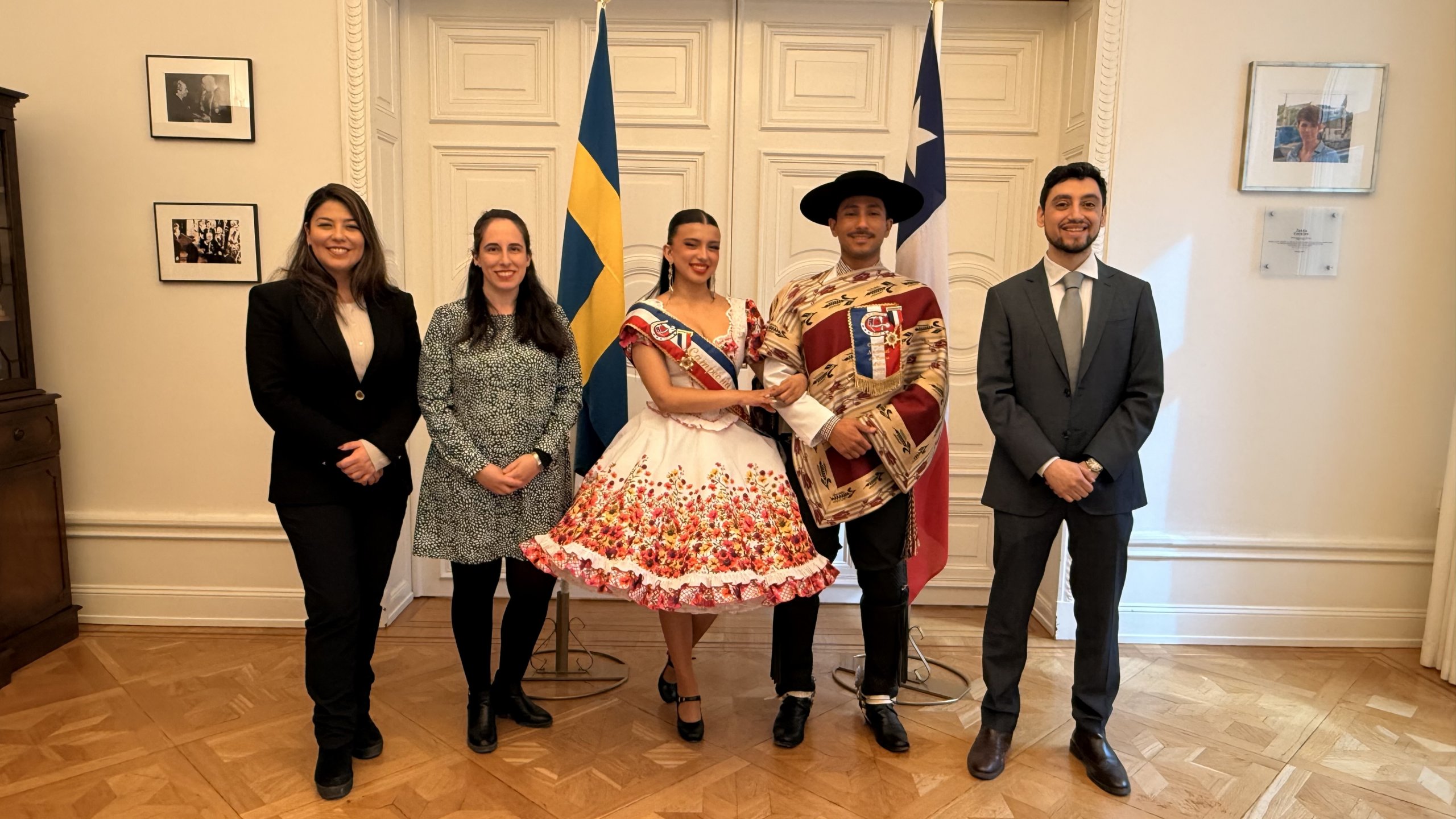 La Embajada de Chile en Suecia y el Consulado de Chile en Estocolmo tuvo el honor de recibir a los actuales campeones nacionales de cueca 2025, Fernanda Torres Villalobos y Michael Villalobos Perea, representantes de La Serena, quienes se coronaron en el 55° Campeonato Nacional de Cueca Adulto Arica 2025, organizado por el Club de Huasos de Arica.