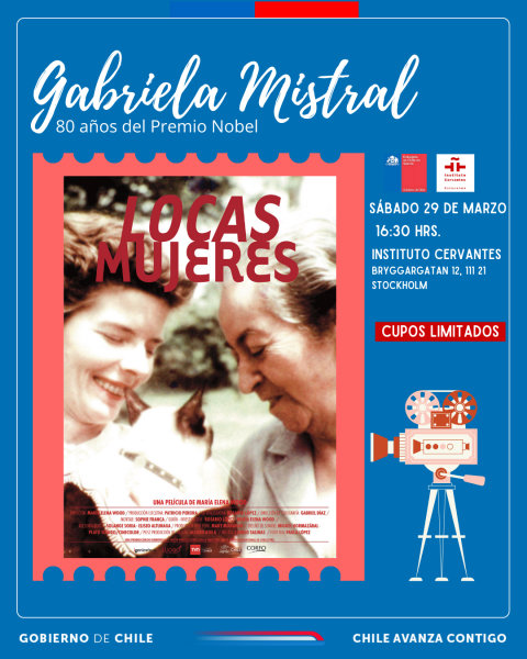 Con un emotivo homenaje, se conmemoró el pasado sábado 29 de marzo el 80º aniversario de la concesión del Premio Nobel de Literatura a la poetisa chilena Gabriela Mistral. El evento, organizado en colaboración con el Instituto Cervantes de Estocolmo, incluyó la proyección del documental "Locas Mujeres", obra de la destacada directora chilena María Elena Wood.
