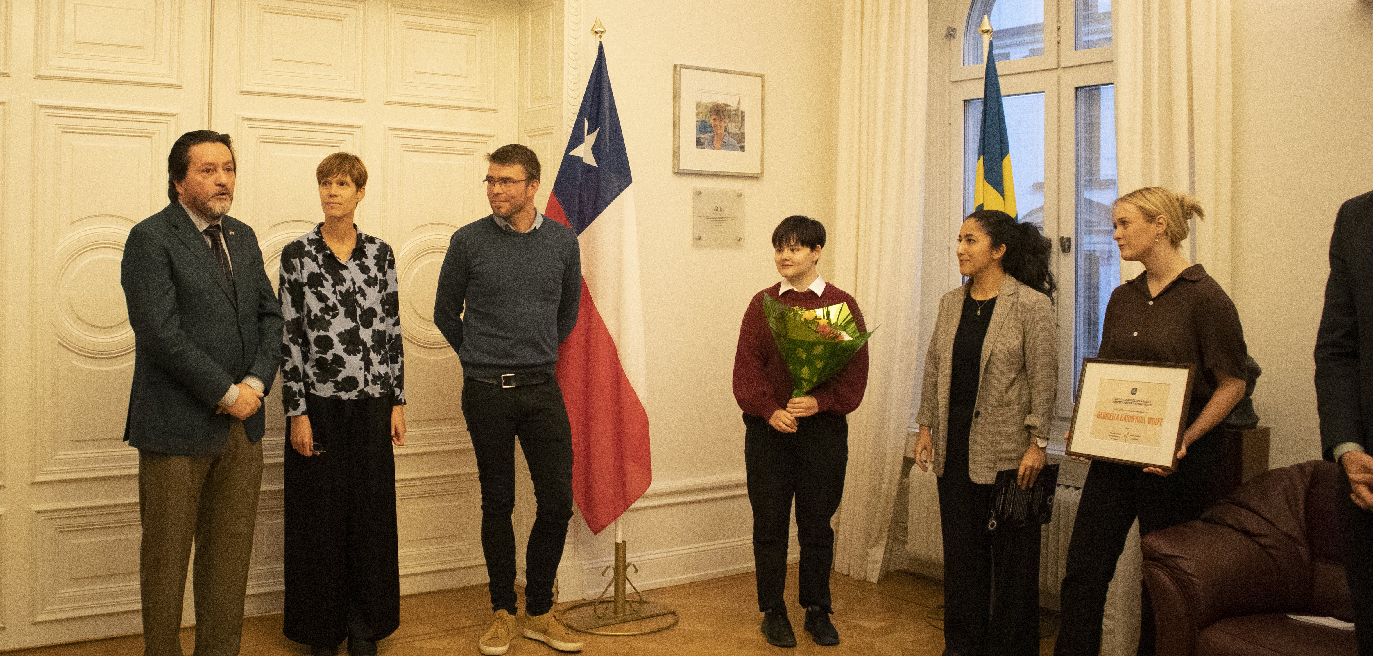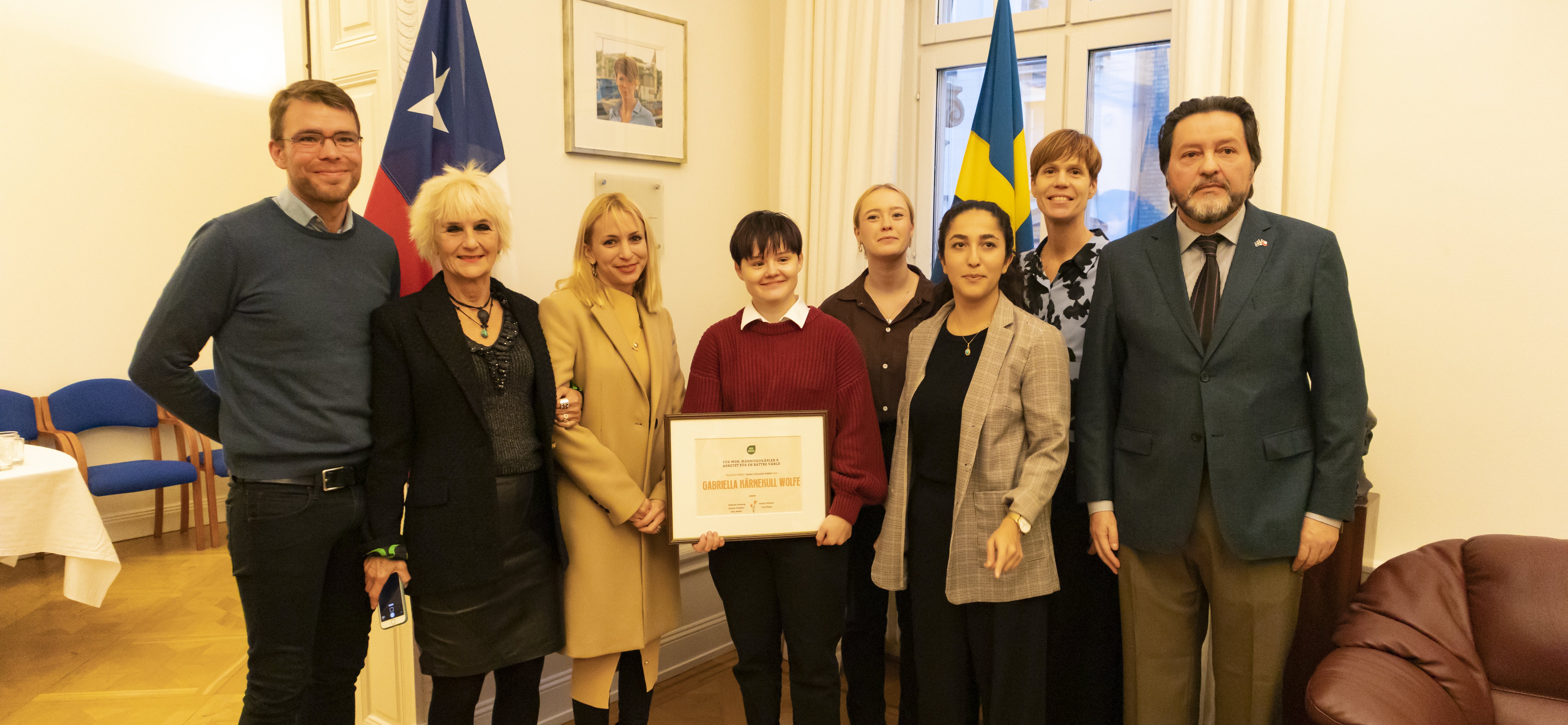 El 6 de octubre se realizó en la Embajada de Chile en Suecia la 5ª entrega del Premio “Zaida Catalán” a la promoción y defensa de los Derechos Humanos. Este año, la ganadora del premio fue Gabriella Kärnekull Wolfe, Defensora del Pueblo (Ombudsman) contra la Explotación Sexual Comercial de los Niños de Suecia.