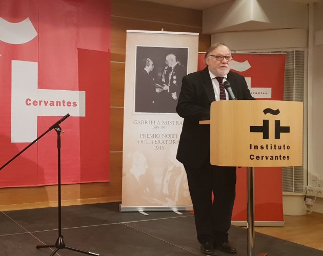 El acto comenzó con unas palabras de bienvenida del Director del Instituto Cervantes, luego el Embajador Hernán Bascuñán se refirió a la celebración de los 200 años de amistad Chile-Suecia, así como a la donación de objetos personales de nuestra poeta, entregada el día anterior al Museo Nobel, y al completo programa cultural que tenemos a lo largo de este año para conmemorar. Posteriormente, el Director de la Biblioteca Nacional, Pedro Pablo Zegers, hizo una semblanza de Gabriela Mistral.