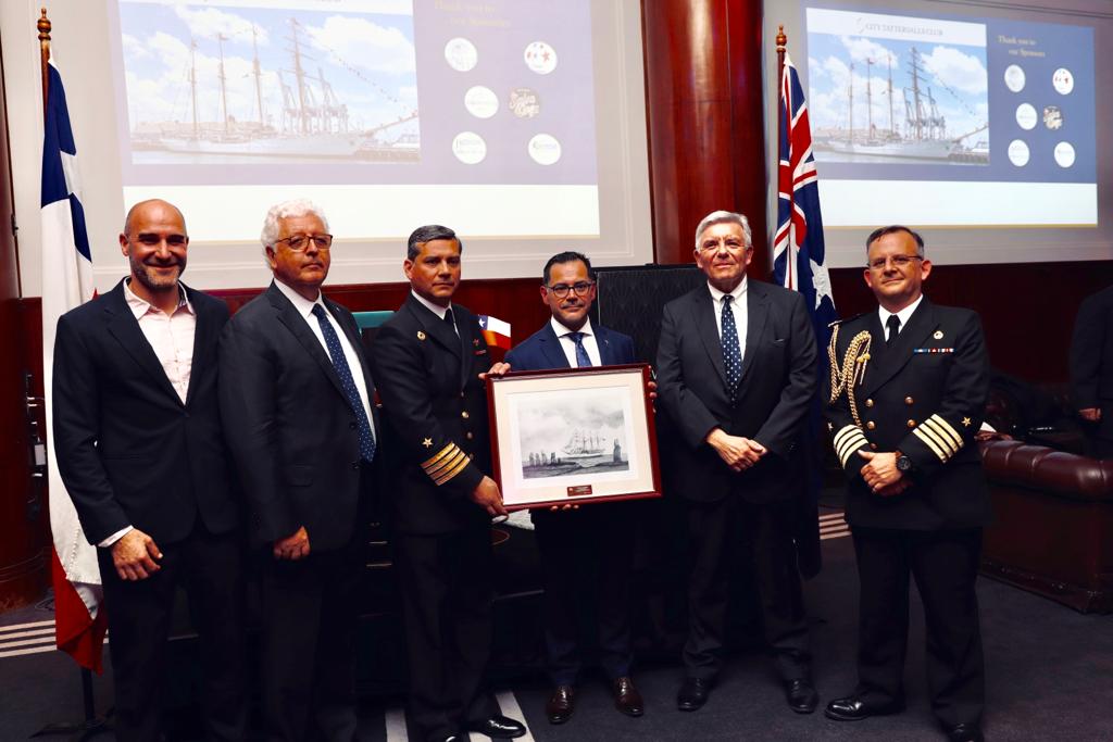 También se ofreció una recepción al Comandante, Capitán de Navío Claudio Maldonado, y a la tripulación del BE en el Club City Tattersall de Sídney, la más antigua institución en su género en el Estado de Nueva Gales del Sur. La actividad, a la que asistieron más de 500 personas, fue organizada en conjunto con la Chilean Australian Association, la Agregaduría de Defensa de la Embajada de Chile en Canberra y nuestro Consulado General.