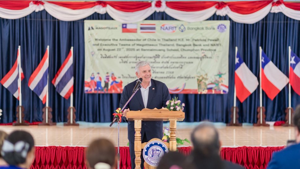El día viernes 22 de agosto el embajador de Chile en Tailandia, Patricio Powell, y el funcionario David Hansen viajaron a la provincia de Chumphon junto a representantes de la empresa Magotteaux, Bangkok Bank, y el Instituto Nacional de Investigación Astronómica de Tailandia (NARIT), con miras a entregar materiales escolares a sus estudiantes y participar de las actividades que su comunidad educativa organizó en torno a la relación Chile-Tailandia.