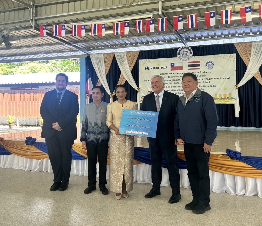 El día viernes 28 de junio el embajador de Chile ante el Reino de Tailandia, Patricio Powell, viajó junto al jefe de cancillería, David Hansen, a la provincia de Chumphon —localizada en el suroeste de Tailandia— para visitar la escuela Baan Nai Muang, con miras a entregar materiales escolares a sus estudiantes y participar de las actividades que su comunidad educativa organizó en torno a la relación Chile-Tailandia. En esta oportunidad también participaron representantes de la empresa Magotteaux, compañía localizada en Tailandia de capitales chilenos que año a año brinda apoyo a la escuela.