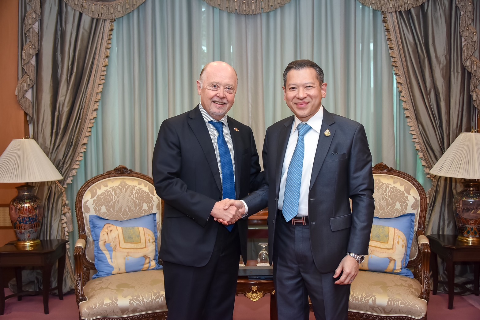 El Ministro de Relaciones Exteriores de Tailandia, Don Pramudwinai y el secretario permanente de esa Cancillería, Sarun Charoensuwan, se reunieron con el embajador de Chile en Tailandia, Alex Geiger, con motivo del término de su misión en este país del sudeste asiático.