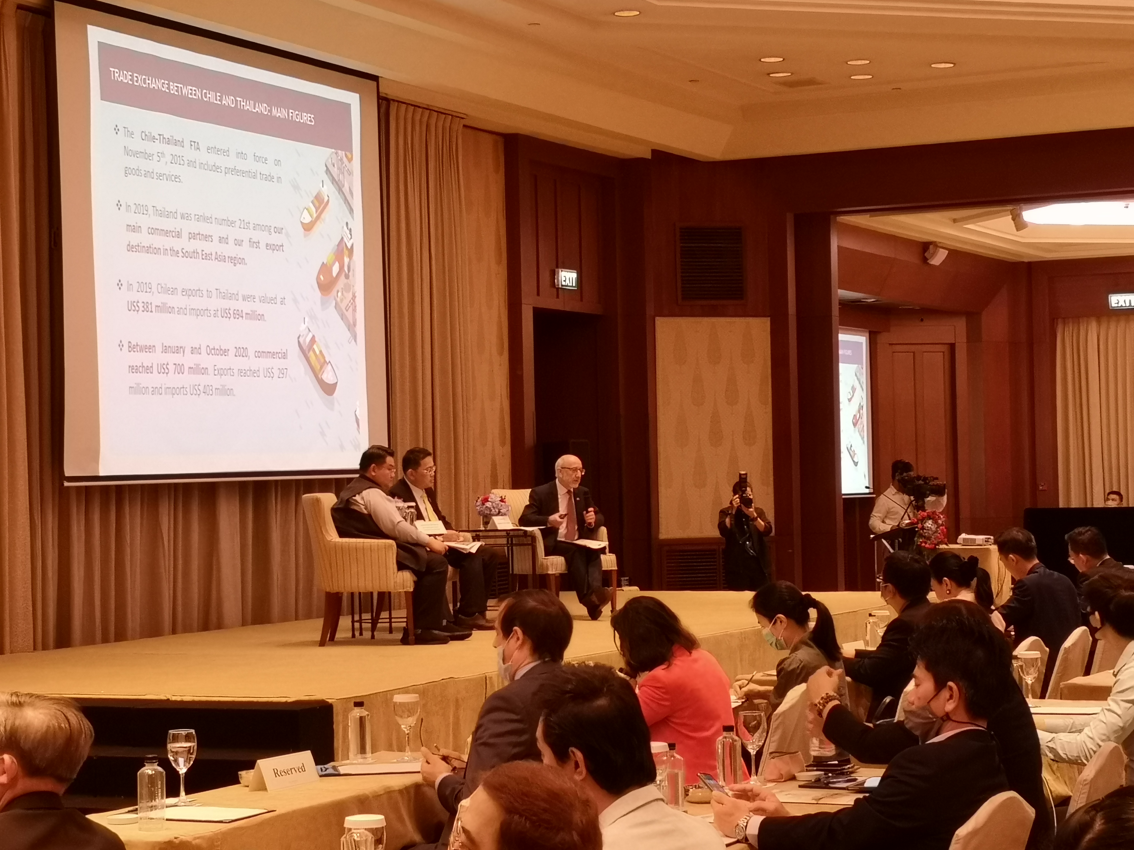 El viernes 4 de diciembre, en el marco de las celebraciones de los 100 años del Ministerio de Comercio de Tailandia, se realizó el seminario "Chile en profundidad: Oportunidades de comercio e inversión para Tailandia en Chile y Sudamérica".