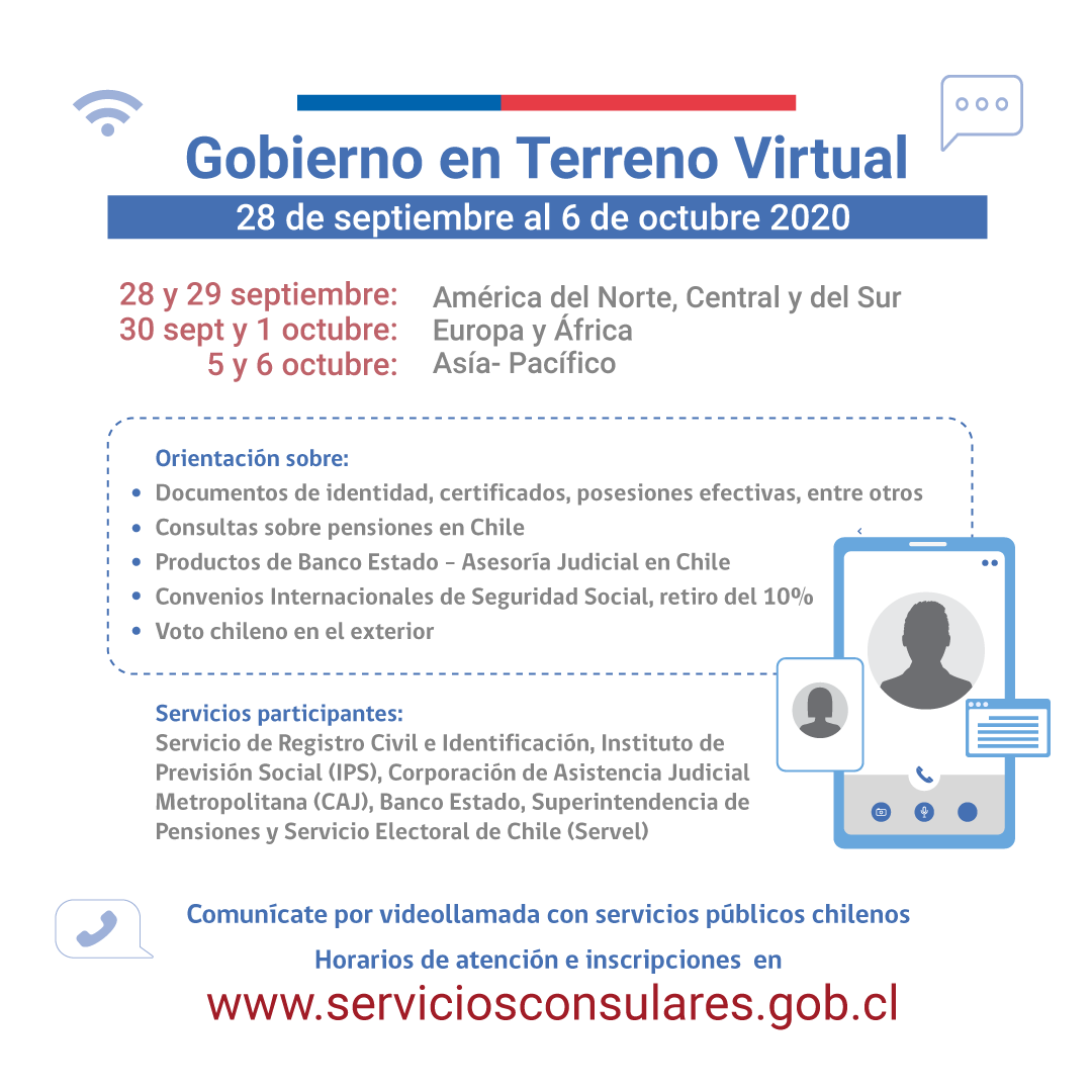 Con la finalidad de acercar los servicios públicos chilenos a los connacionales que residen en otros países, la Dirección para la Comunidad de Chilenos en el Exterior (Dicoex) desarrollará un inédito Gobierno en Terreno Virtual.