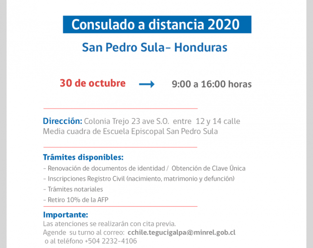 Consulado a distancia en San Pedro Sula | Viernes 30 de octubre