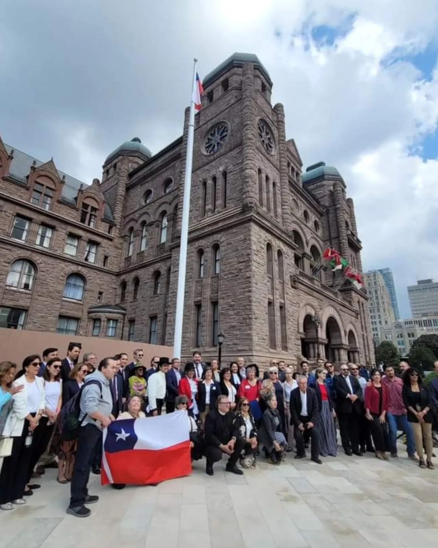 El lunes 18 de septiembre se efectuó una ceremonia de izamiento de la bandera de Chile en la Asamblea Legislativa de la Provincia de Ontario. La actividad fue presidida por la diputada provincial Bhutila Kharpoche, en representación del speaker de la Asamblea, los diputados provinciales del Partido Conservador Progresista de Ontario Sheref Sabawy y Patrice Barnes y la concejala de la Ciudad de Toronto, la connacional Alejandra Bravo. Asimismo, se contó con la presencia del cuerpo consular acreditado en Toronto y representantes de la comunidad chilena residente.
