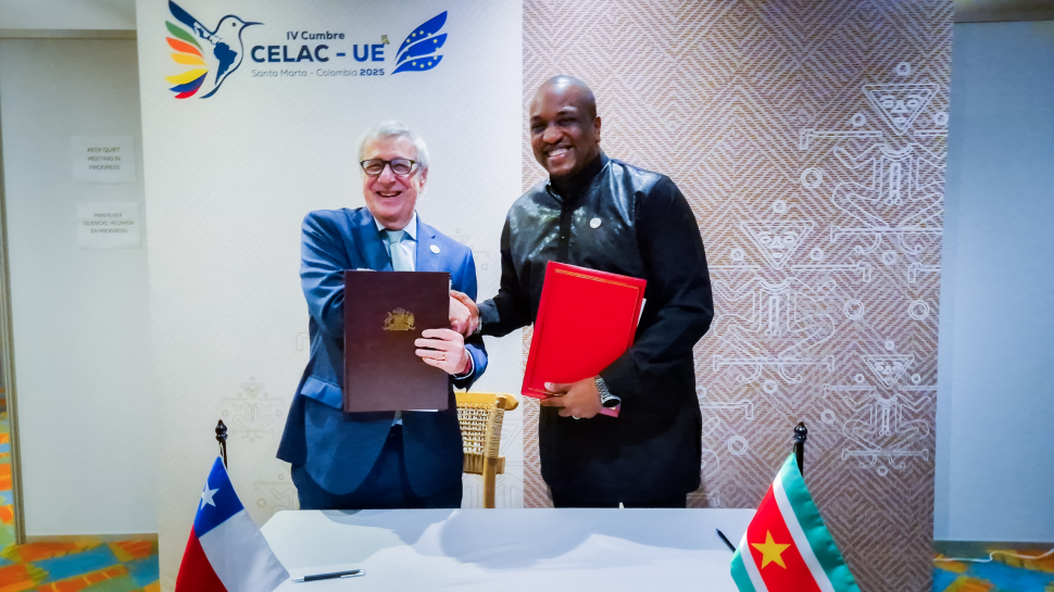 En el marco de la IV Cumbre de la Comunidad de Estados Latinoamericanos y Caribeños y la Unión Europea (CELAC–UE), celebrada en Santa Marta, Colombia, los ministros de Relaciones Exteriores de Chile y de Surinam suscribieron un memorándum de entendimiento para el establecimiento de un Mecanismo de Consultas Políticas entre ambos países.