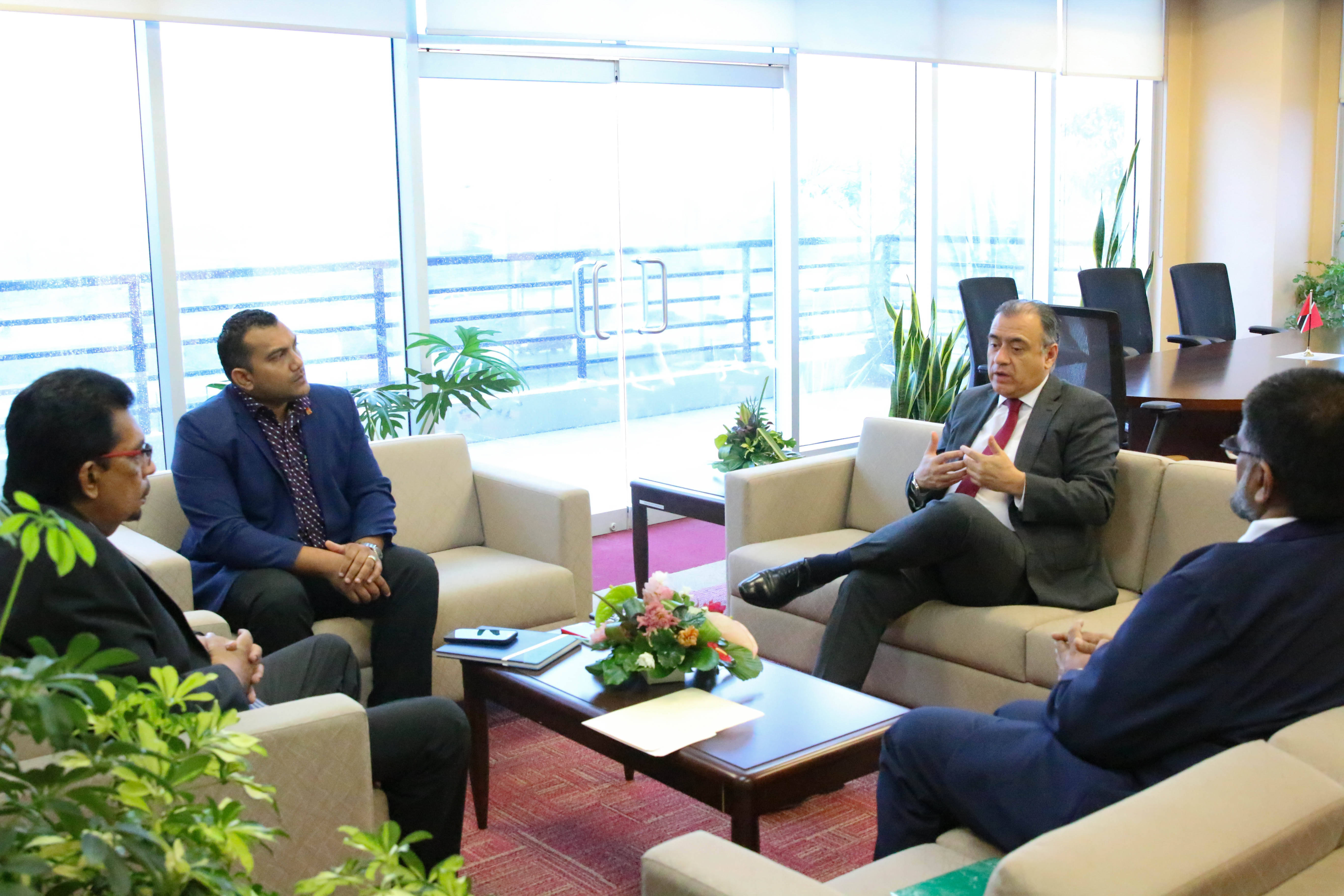 El embajador Hernán Núñez sostuvo el martes 03 de abril una reunión de trabajo con el ministro de Agricultura, Tierras y Pesca, senador Kazim Hosein, quien estuvo acompañado por el viceministro y por el secretario permanente de esa cartera.