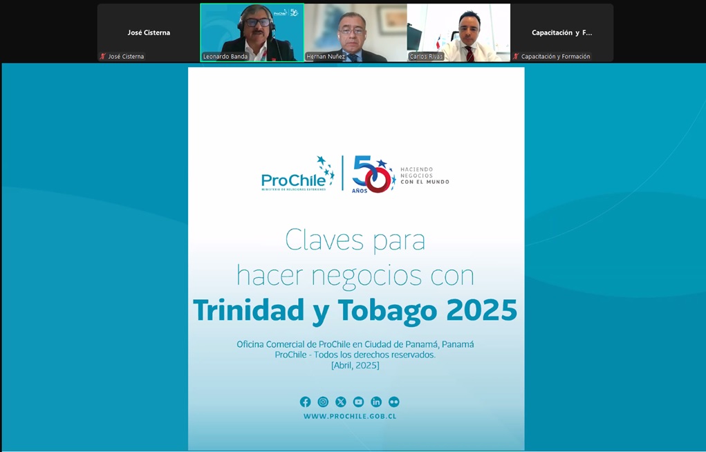 Con el objetivo de promover la internacionalización de productos chilenos en el Caribe, la embajada de Chile participó hoy en el webinar “Claves para hacer negocios con Trinidad y Tobago”, organizado por ProChile y dirigido a empresas exportadoras interesadas en ingresar a este mercado estratégico de la región.