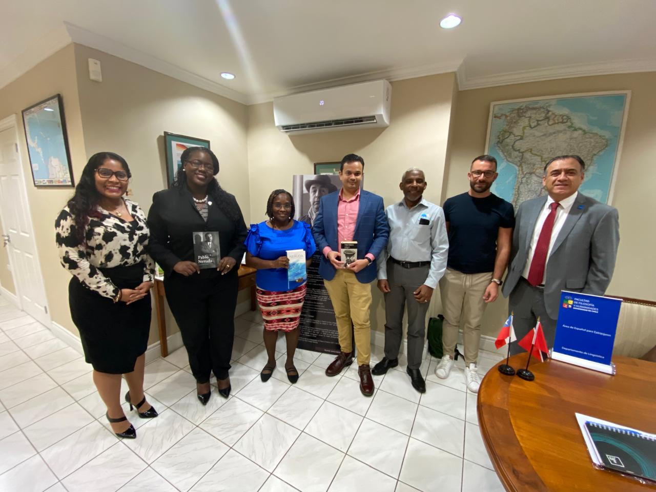 El pasado martes 30 de julio se llevó a cabo el “Taller de Español Avanzado” en las instalaciones de la Embajada de Chile en Trinidad y Tobago. La actividad fue impartida por el profesor Moisés Llopis, de la Universidad de Chile, quien se encuentra en Puerto España como parte de la semana presencial del “Curso de Español para funcionarios públicos del Caribe Anglófono”, ofrecido por AGCID.