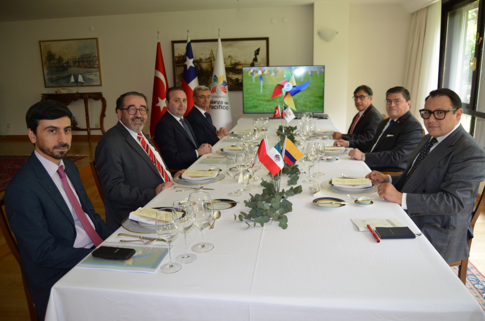 Con motivo de la conmemoración del 13° aniversario de la creación de la Alianza del Pacífico y 10 años de participación de Türkiye como observador, el embajador Rodrigo Arcos organizó un almuerzo de trabajo en la Embajada de Chile, con la participación del viceministro de Comercio, Mustafa Tuzcu, altos funcionarios de dicho ministerio, y embajadores y representantes de las embajadas de Perú, Colombia y México, siendo está la primera actividad oficial y de trabajo que efectúa la Alianza del Pacífico en Türkiye.