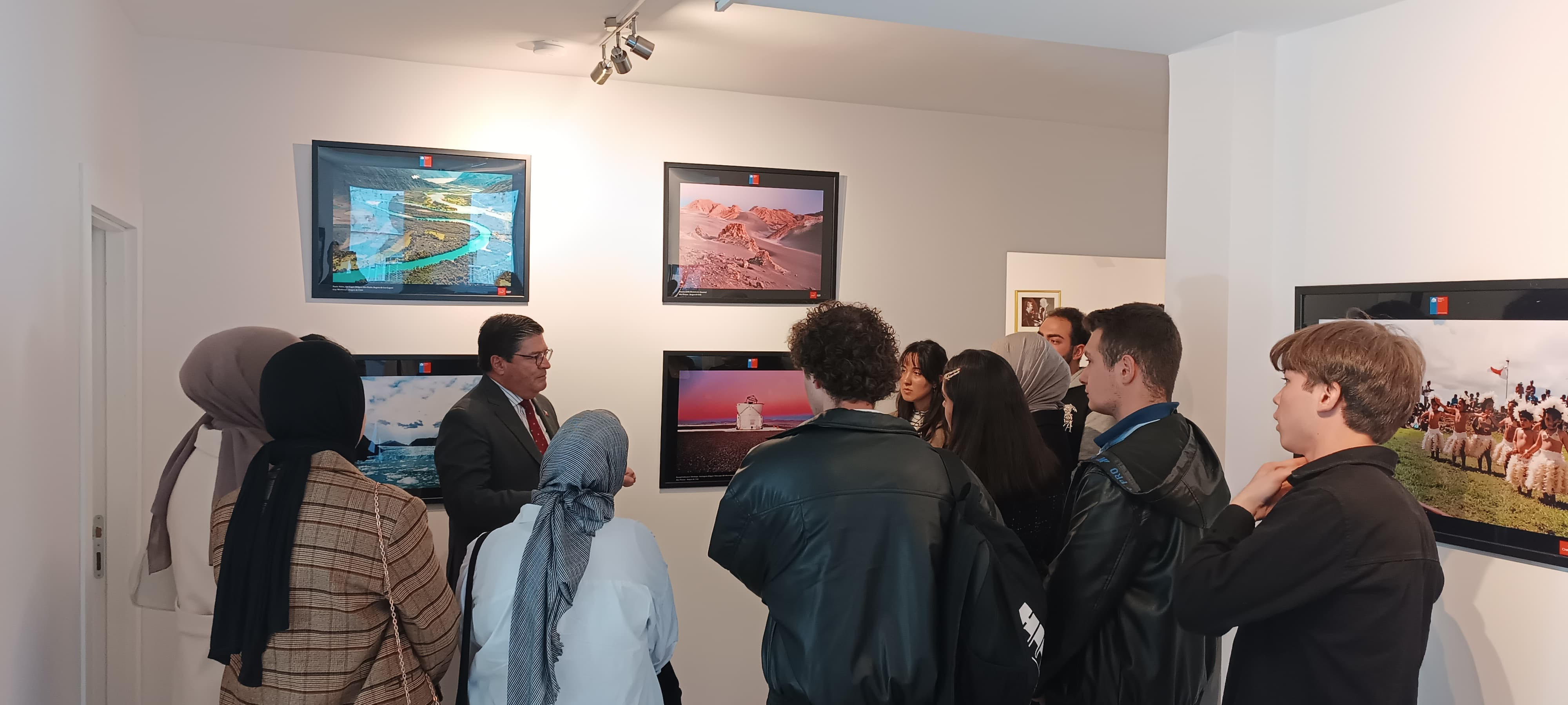 Posteriormente, a fin de mostrarles la diversidad geográfica del país, los jóvenes recorrieron la muestra fotográfica permanente de la Embajada.