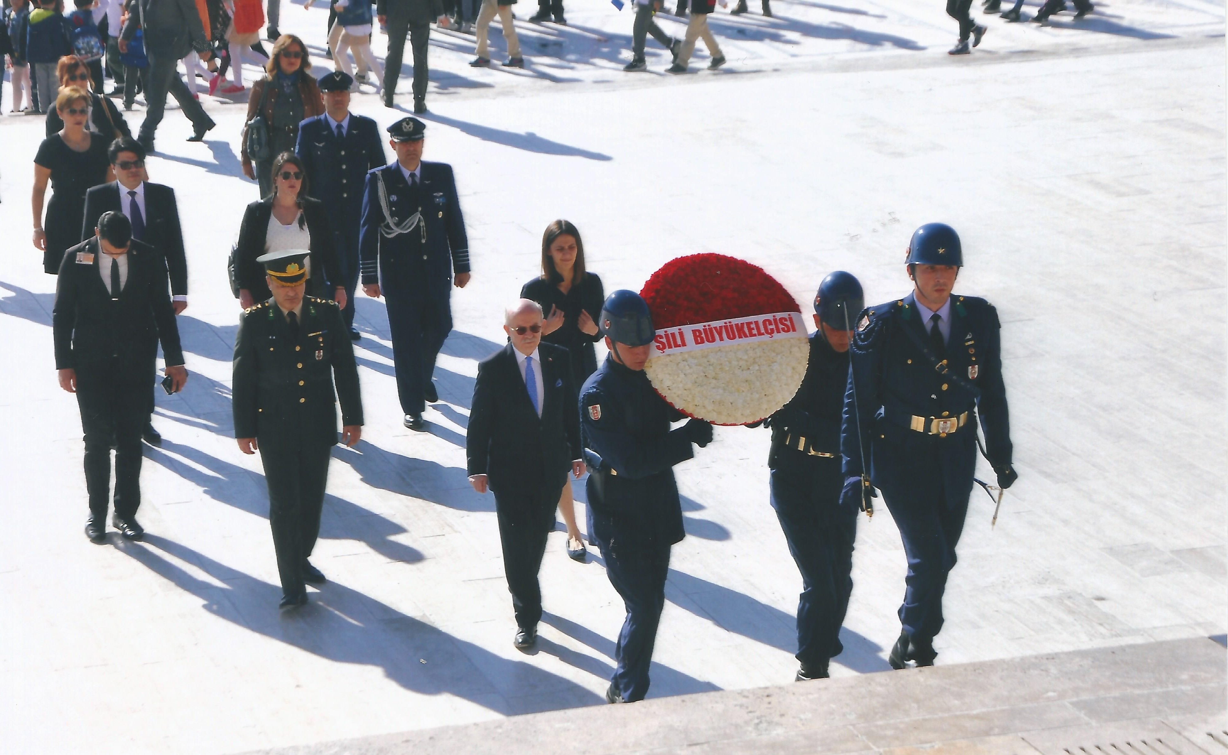 Al día siguiente, se realizó la ceremonia de homenaje a la memoria del fundador de la República turca, Mustafa Kemal Atatuk, en el Mausoleo en el que descansan sus restos. En la actividad participaron parte los funcionarios y personal local de esta Embajada, y consistió en el depósito de la ofrenda floral y la suscripción del libro de oro del recinto.