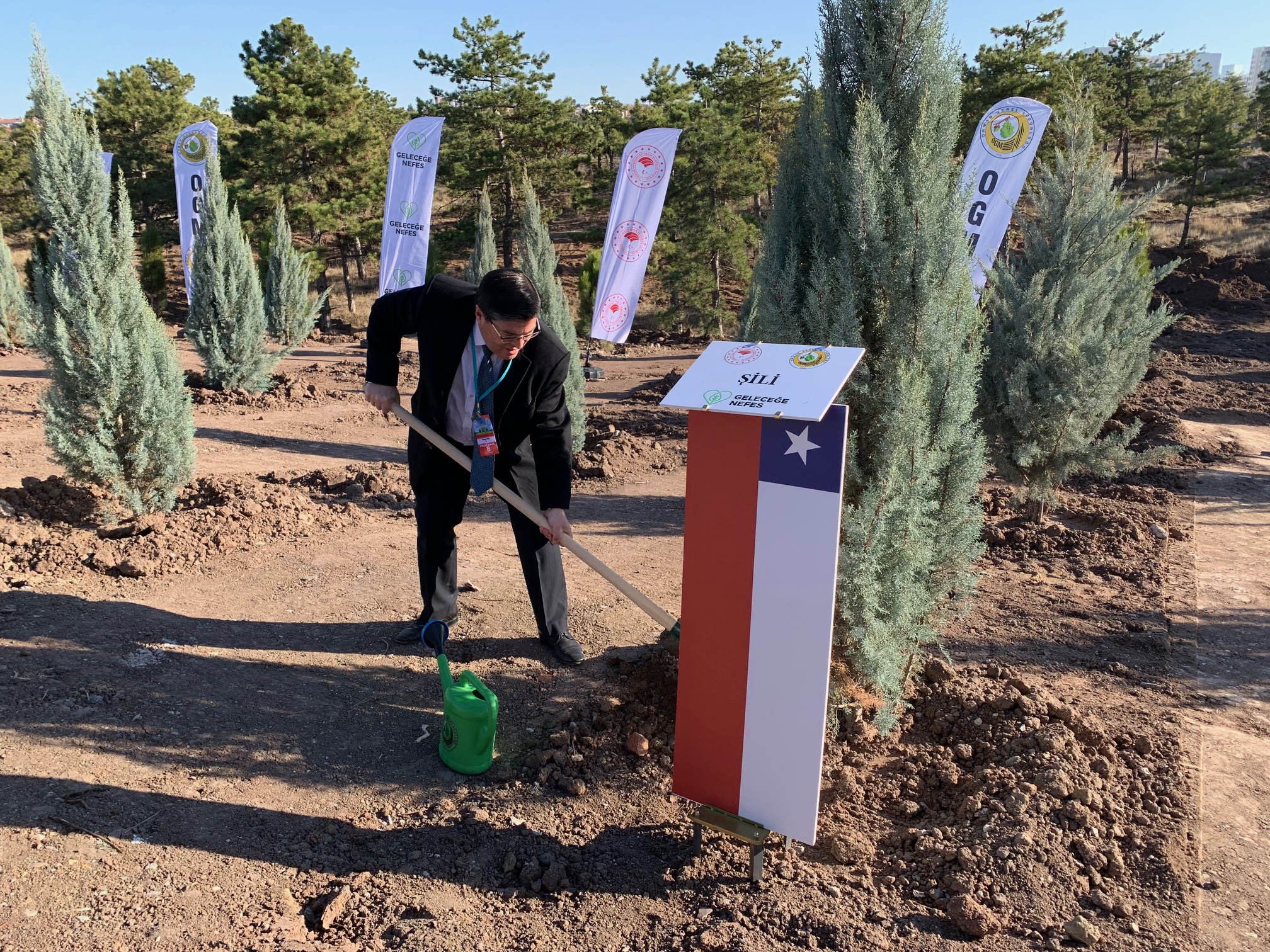 Invitado por la Presidencia de Turquía y el Ministerio de Agricultura, el Embajador Rodrigo Arcos participó en el lanzamiento de la Campaña "Breath for the Future", que busca reforestar 1/3 de la superficie del país en los próximos dos años, como parte de las acciones de conmemoración del Centenario de la República el 2023. Esta campaña, según indicó el presidente Erdogan, partirá con la reforestación, con 250 millones de árboles, de las zonas más afectadas por los incendios forestales de julio y agosto pasado.