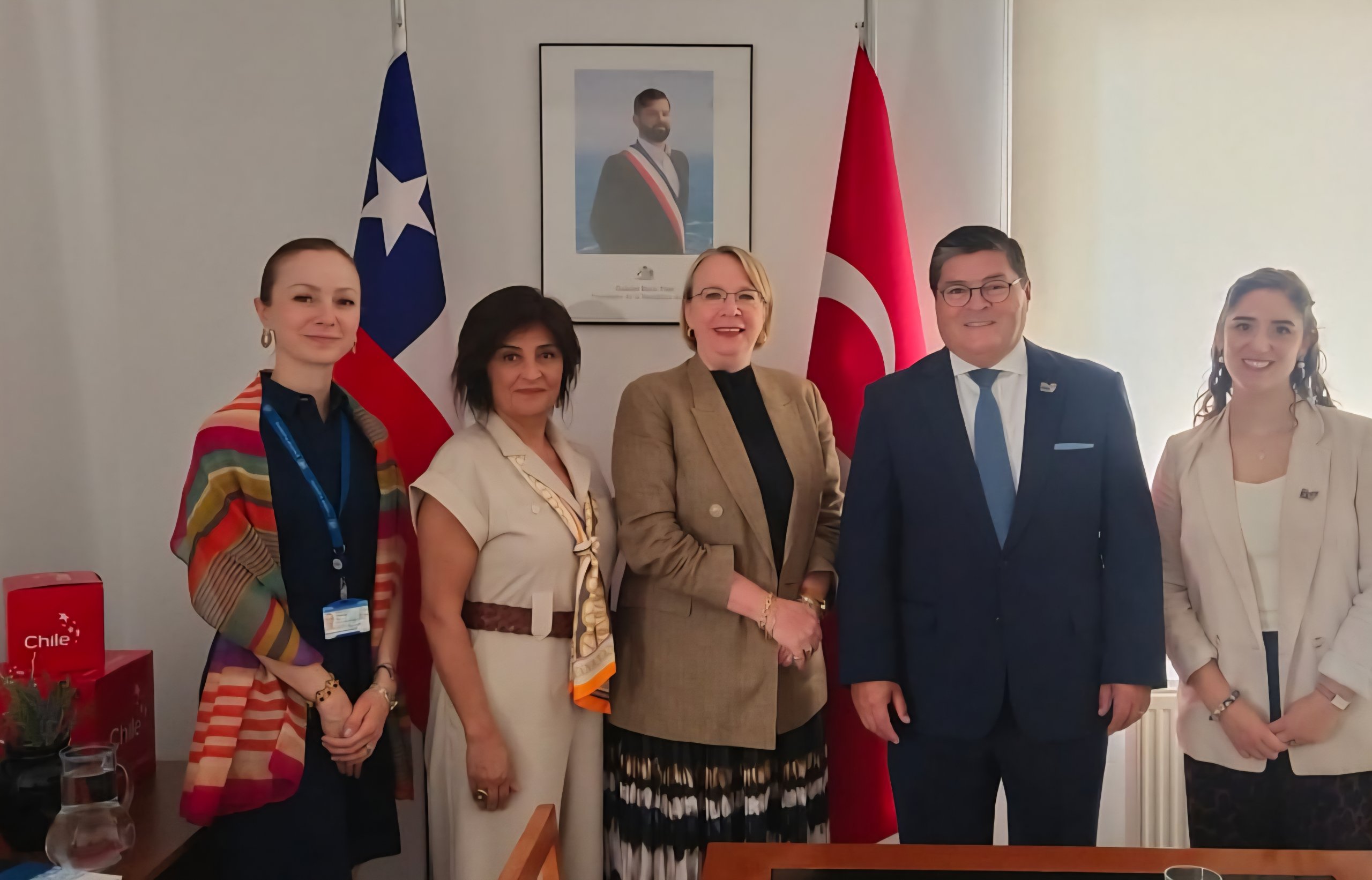 El día 28 de julio, el embajador Rodrigo Arcos se reunió con la directora de ONU Mujeres Türkiye, Maryse Guimond, y miembros de su equipo, a fin de intercambiar experiencias y coordinar próximas actividades conjuntas, especialmente considerando aspectos como la promoción de los derechos de las mujeres y niños, asi como los programas de apoyo y cuidados que se encuentran desarrollando Chile y Türkiye, en los cuales podemos trabajar junto a ONU Mujeres, además de la promoción de los compromisos de Chile en el ámbito multilateral y con los organismos de Naciones Unidas.