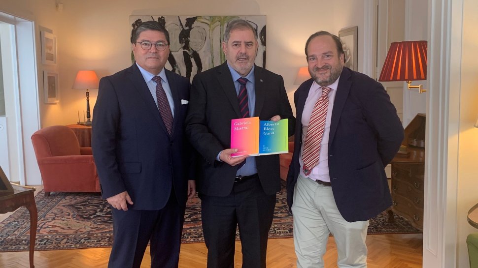 Con la presencia del embajador de España en Türkiye, Javier Hergueta, el embajador de Chile en Türkiye hizo entrega de libros de la Colección “Diplomacia y Letras”, elaborada por DIRAC, en conjunto con Biblioteca Nacional de Chile, al Director del Instituto Cervantes en Estambul, Fernando Vara de Rey, con el propósito que sean incorporados a la Biblioteca de dicha entidad.