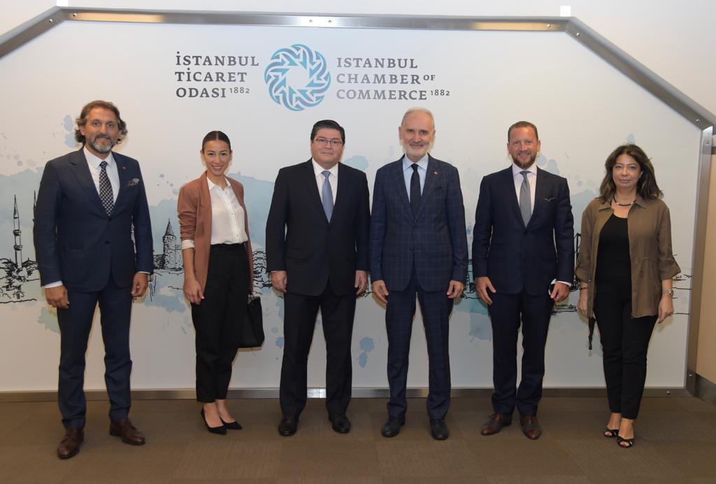 Con el propósito de potenciar la relación bilateral y avanzar en la discusión de la agenda económica y comercial, reforzar el interés de modernizar el Acuerdo de Libre Comercio; analizar las posibilidades de establecer una conexión aérea más directa a fin de potenciar el turismo, el comercio y las inversiones, el Embajador de Chile en Turquía, Rodrigo Arcos, acompañado por el Cónsul Honorario en Estambul, Batu Aksoy y Ozge Tuysuzoglu Garate, Directora de la Oficina Comercial de Prochile en Estambul, se reunió con los presidentes de las principales organizaciones empresariales con sede en esa ciudad.