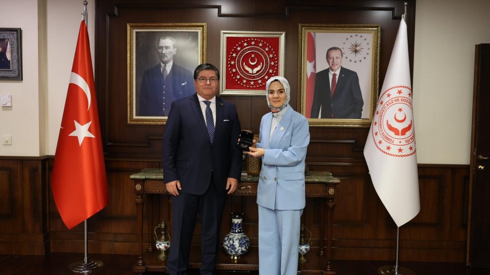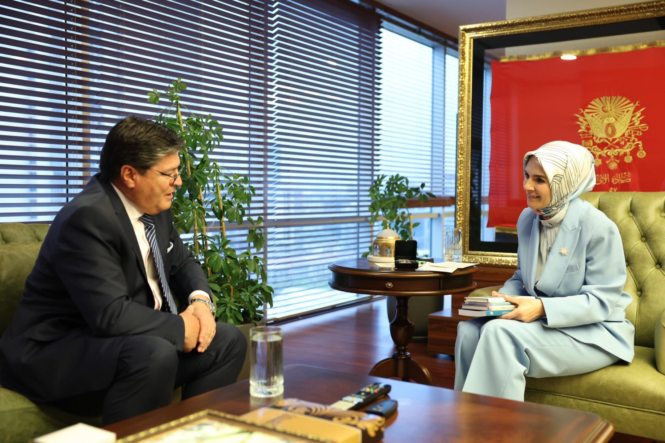 Ministra de Familia y Servicios Sociales de Türkiye recibe a embajador Rodrigo Arcos