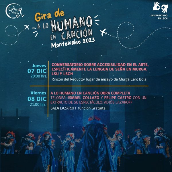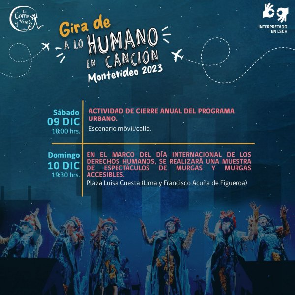 Asimismo informa el programa completo de la compañía chilena “Murga la Corre y Vuela” en el marco de su gira por Montevideo, del 7 al 10 de diciembre de 2023.