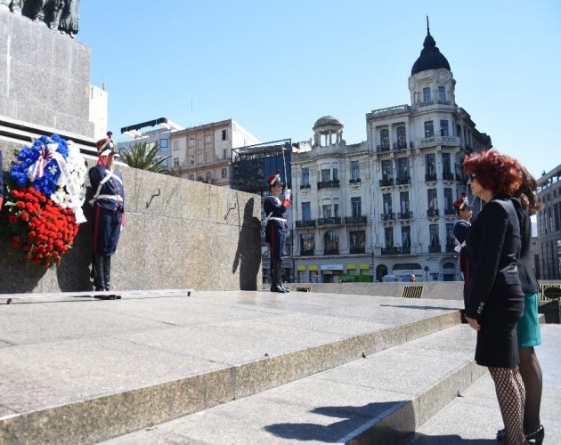 Depósito de ofrenda floral en momumento al procer José Artigas