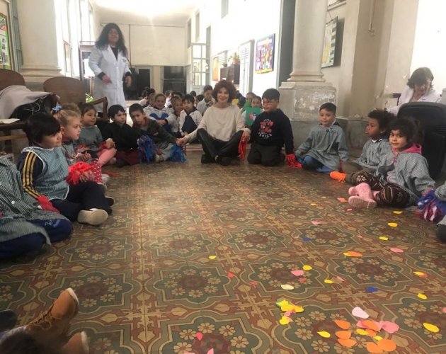 Actividad con niños y donación de libros a la Escuela República de Chile