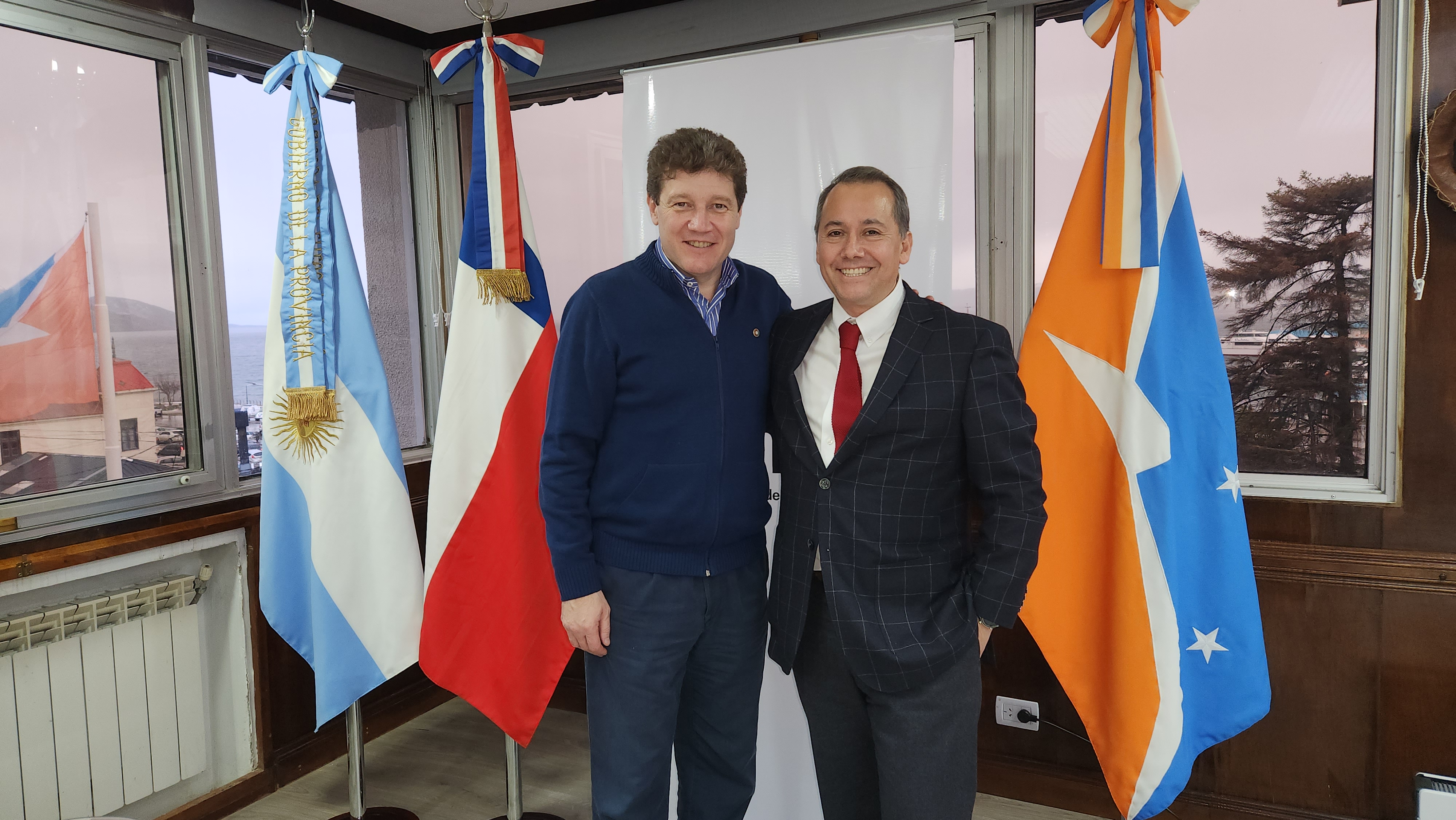 El Cónsul de Chile en Ushuaia, Rodrigo Toledo, se reunió con el gobernador de la Provincia de Tierra del Fuego, Antártida e Islas del Atlántico Sur, Gustavo Melella.