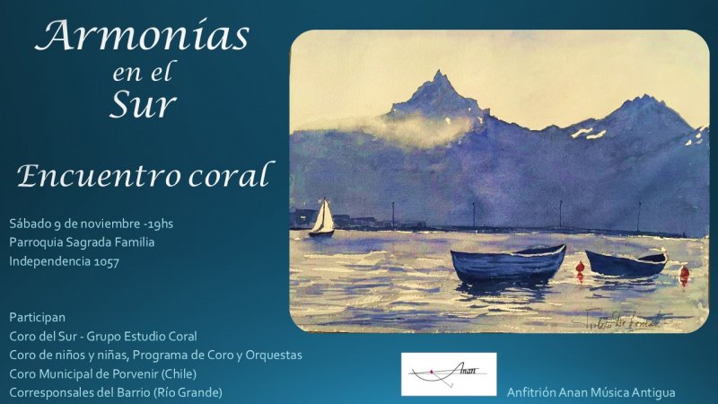 Se trata del primer encuentro de coros del extremo sur fue organizado por la agrupación vocal "Anan Música Antigua" de la ciudad de Ushuaia, y contó con la participación de 7 agrupaciones provenientes de la Provincia de Tierra del Fuego Argentina y tuvo por objetivo fomentar la colaboración y la hermandad entre chilenos y argentinos en Tierra del Fuego.