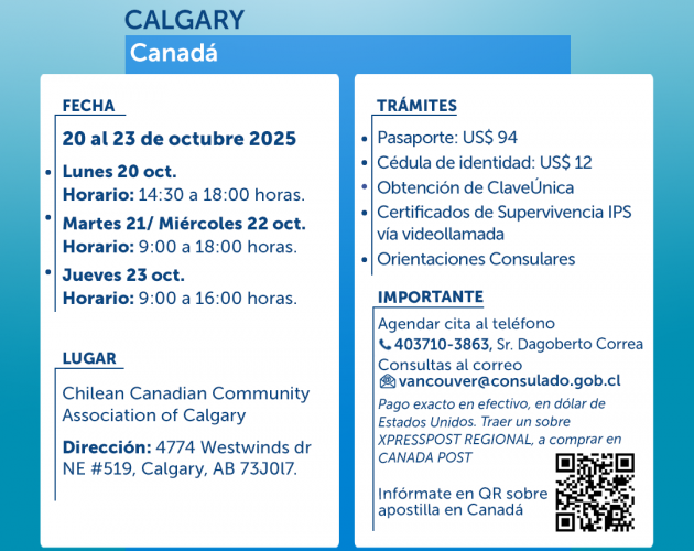Consulado a Distancia en Calgary, 20 al 23 de octubre de 2025