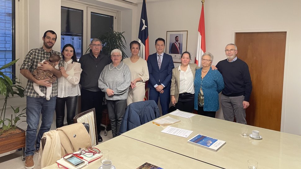 El pasado 13 de enero el Embajador de Chile en Austria, Sr. Rodrigo Olsen, se reunió con el directorio de la asociación de connacionales “Comunidad chilena en Austria”. En un ambiente de cordialidad se relevaron diversas iniciativas de gran importancia para nuestros connacionales en el exterior, tales como, el proceso de cambio de domicilio electoral, la convocatoria del Fondo Concursable DICOEX y la obtención de la clave única.