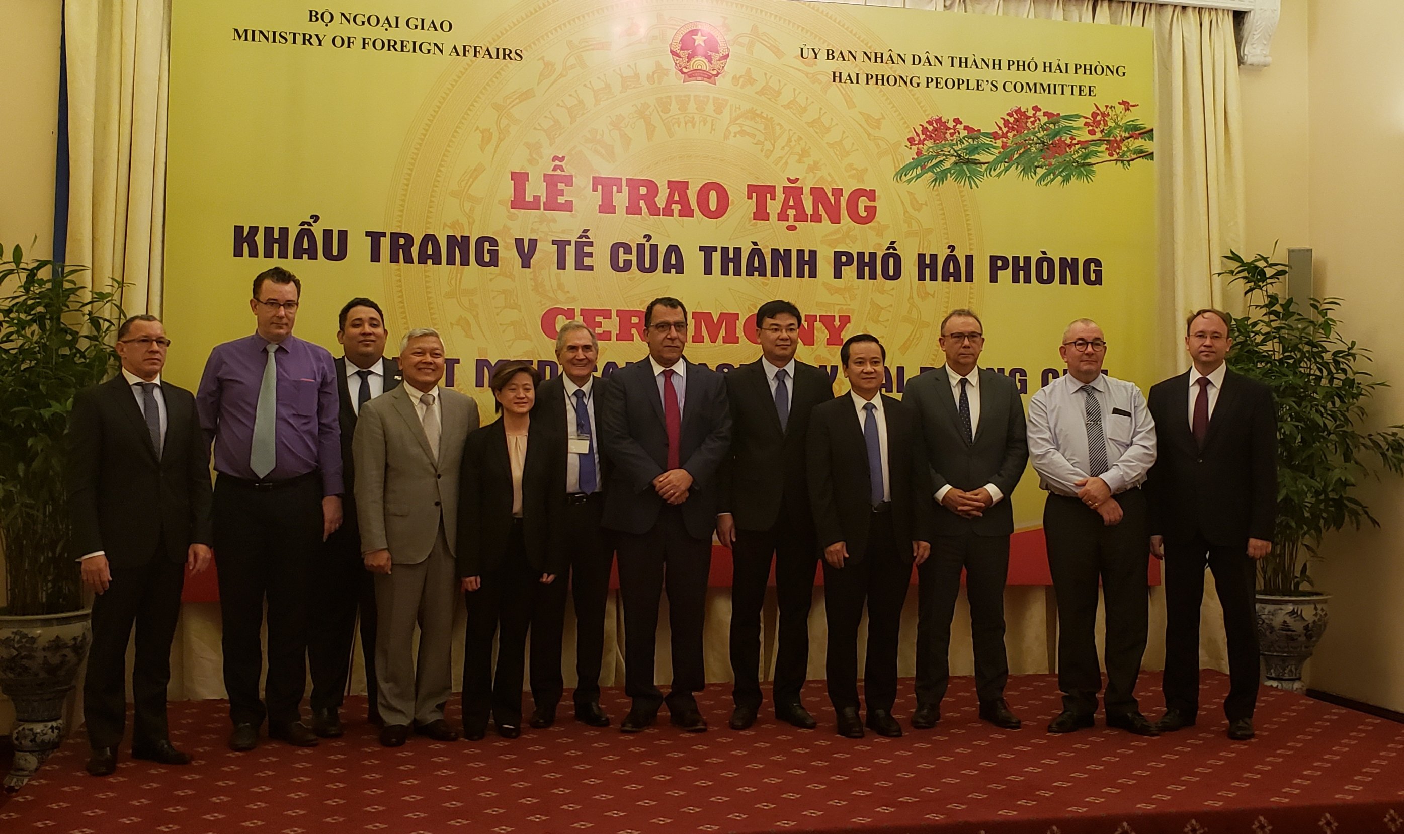 El Embajador de Chile, Jaime Chomalí, asistió a una ceremonia de entrega de 50 mil mascarillas faciales médicas, donadas por el Comité Popular de la ciudad de Hai Phong al Gobierno de Chile, y que contó con la cooperación del Ministerio de Relaciones Exteriores de Vietnam.