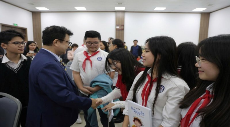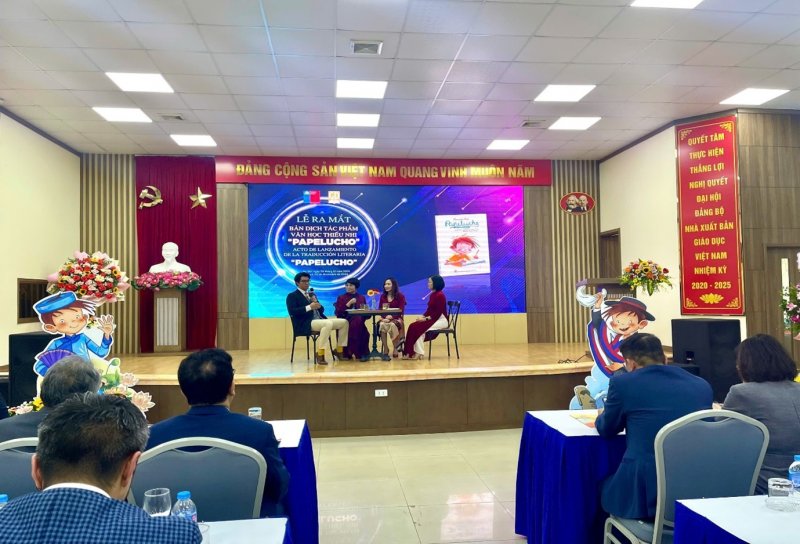 Como parte del evento, se llevó a cabo el conversatorio "El viaje de traducción del libro Papelucho", donde el embajador expresó su agradecimiento a los asistentes, especialmente a las y los estudiantes de la Escuela Secundaria Chu Van An, quienes participaron activamente en la ceremonia.