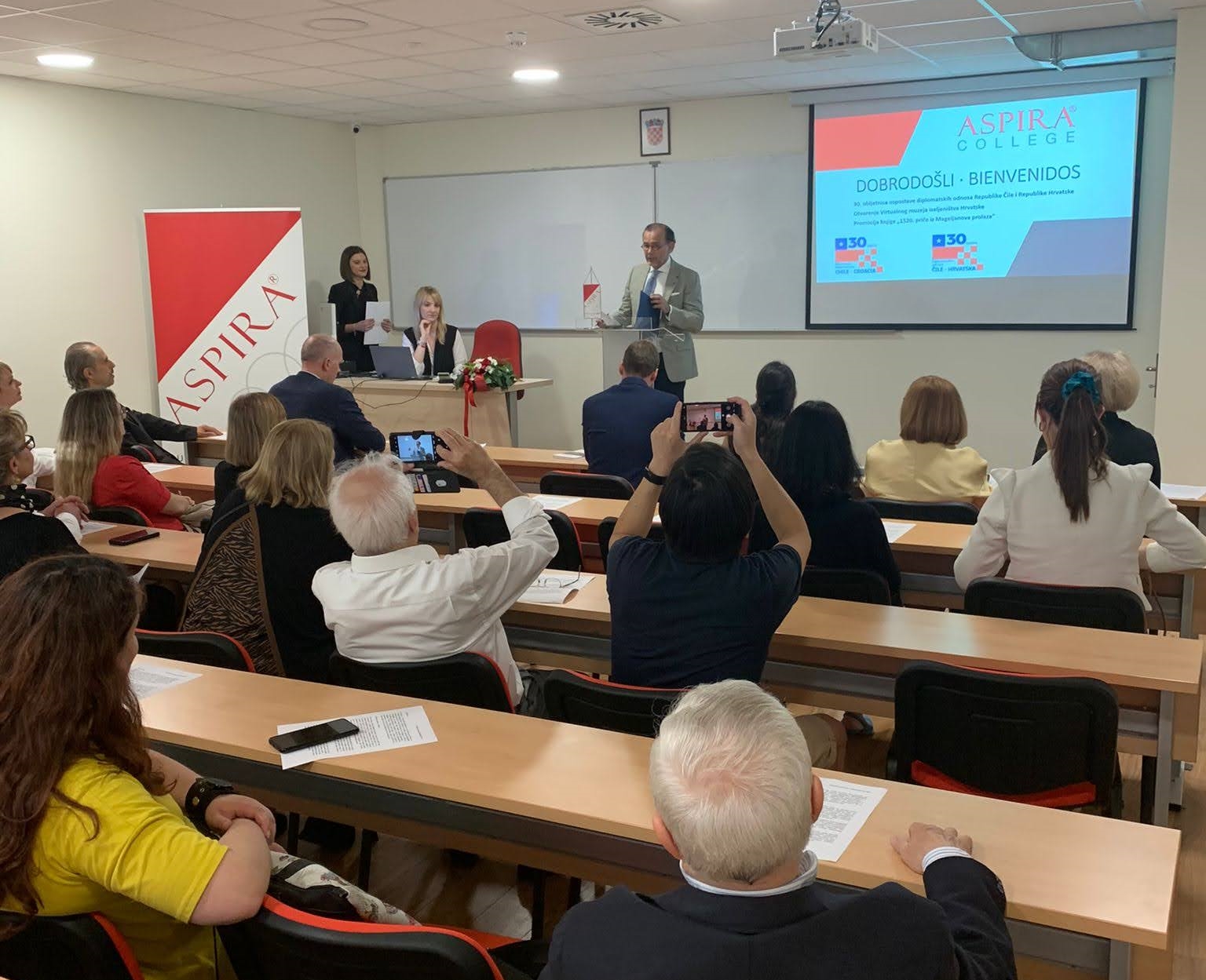 Este martes 17 de mayo de 2022, se realizó una actividad organizada por la Embajada de Chile en Croacia y la Universidad Aspira de Zagreb, dentro del marco de las celebraciones de los 30 años de relaciones diplomáticas entre Chile y Croacia. Al evento concurrieron algunas personalidades académicas croatas, periodistas y la comunidad chilena-croata residente.