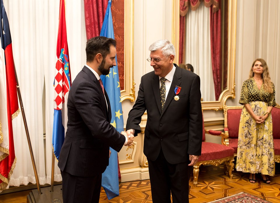 El Encargado de Negocios a.i. de Chile, Maximiliano Jara Pozo, impuso la condecoración, en nombre del Estado chileno, al vicepresidente del Parlamento de Croacia, Željko Reiner, con la medalla de Orden al Mérito Bernardo O'Higgins, en el grado de Gran Oficial.